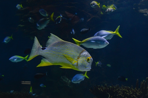 Foto dell'autore Diana Cocco candidata al contest fotografico pesci su Dizy. Data inserimento: mercoledì 17 settembre 2025. Titolo: Pesci: pesce dentice giallo e blu - parco oceanografico - Valencia